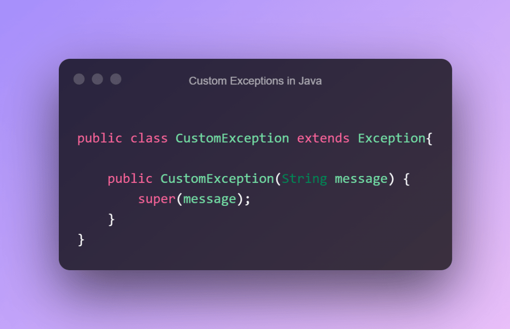 We can create our own exceptions in Java and throw them whenever we want. To create our own exception, we just need to create a java class and extend Java’s Exception class.