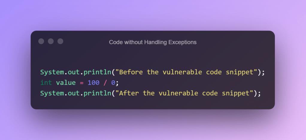 To keep the application’s usual flow, we need to manage exceptions. The rest of the code will not be performed if an exception occurs. That should not happen in our applications. So, even if exceptions arise, we must handle them and make the code run properly.