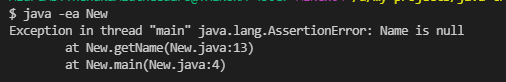 When we run the java file in the regular way, the assertions will be disregarded. To have the compiler consider the assertions, we must manually activate assertions with -ea.